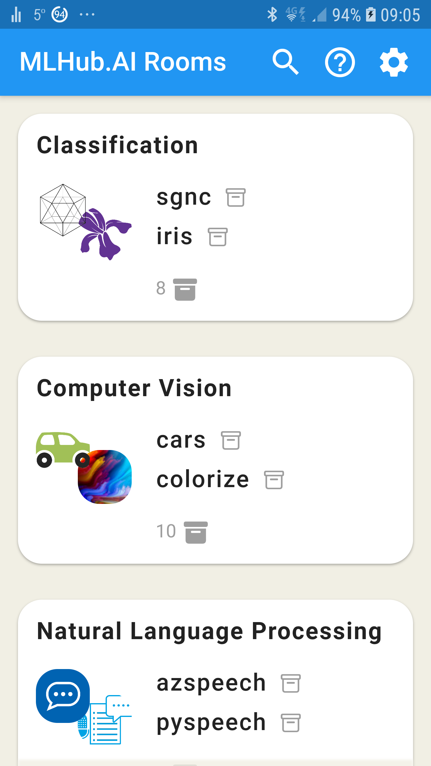 This sample app utilises Cards to utilise the Machine Learning and Artificial Intelligence hub https://mlhub.ai within Flutter.