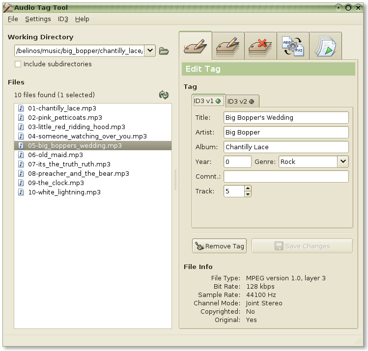 Tag Tool’s main window for managing mp3 tags. {#fig:tagtool-bigbopper}