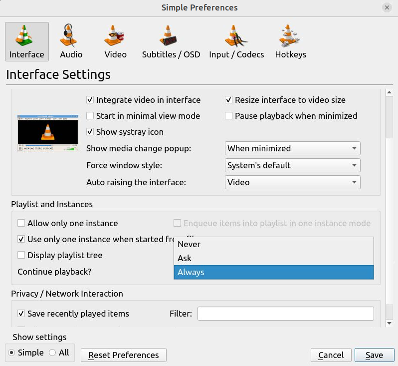 Note that for the current version on Ubuntu (vlc --version showing
